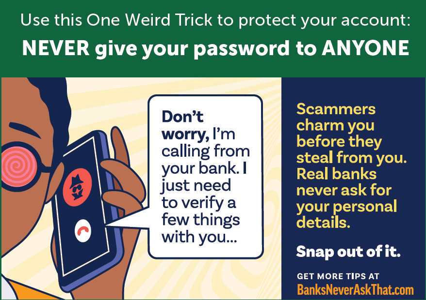 - You’re asked for personal information like your PIN number, passwords or Social Security number.